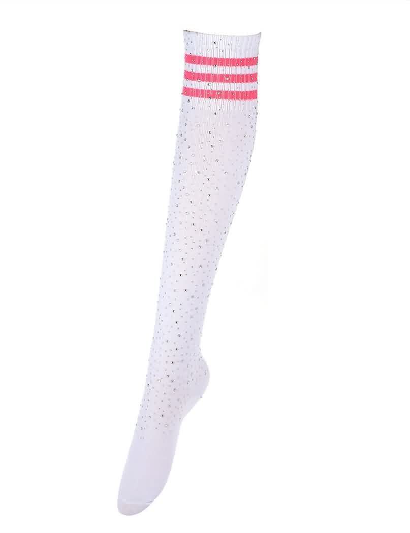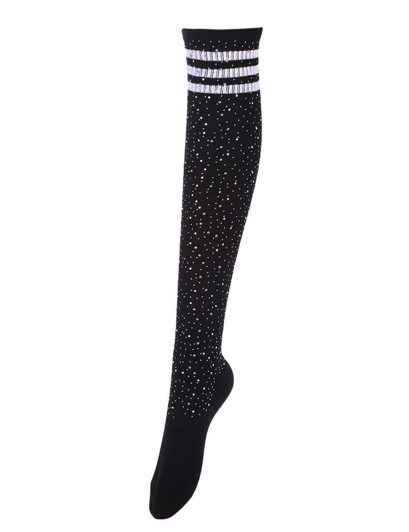 Glittering Rhinestone Striped Over Knee Socks