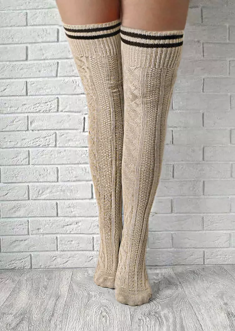 Striped Rhombus Warm Thigh-High Socks